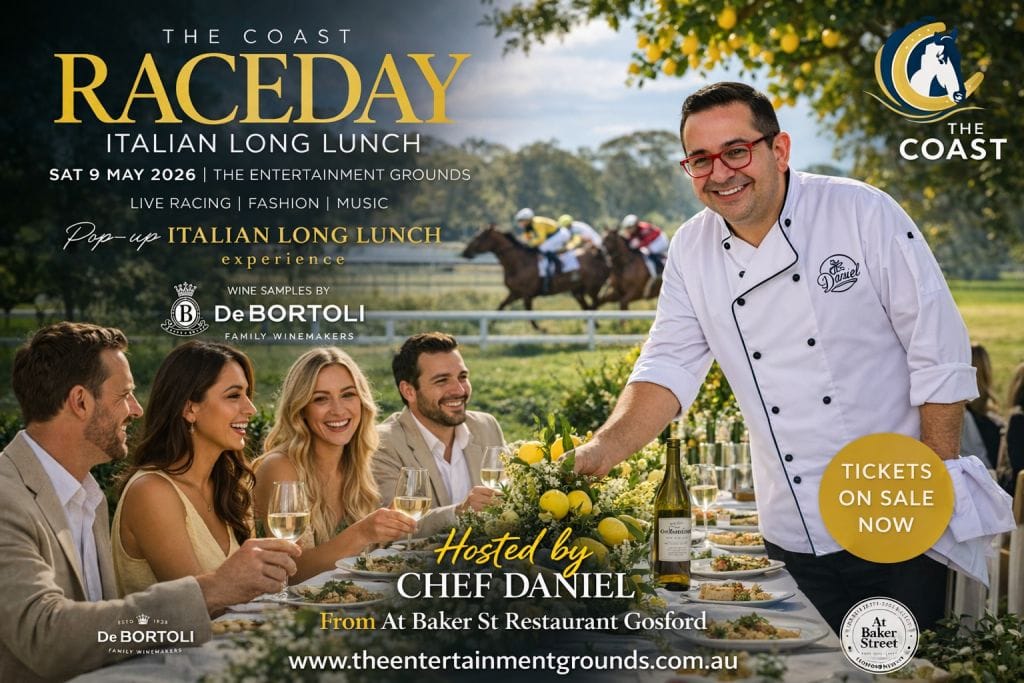 Join us for a vibrant and immersive pop-up Italian Long Lunch curated by Chef Daniel of At Baker St Restaurant & Bar (Gosford) and owner of Fork N Knife Catering. Driven by a deep passion for food and connection, Chef Daniel believes that sharing a meal is one of life’s most memorable experiences. His philosophy is simple: “when people come together over beautiful food, it creates moments that stay with them forever”.
