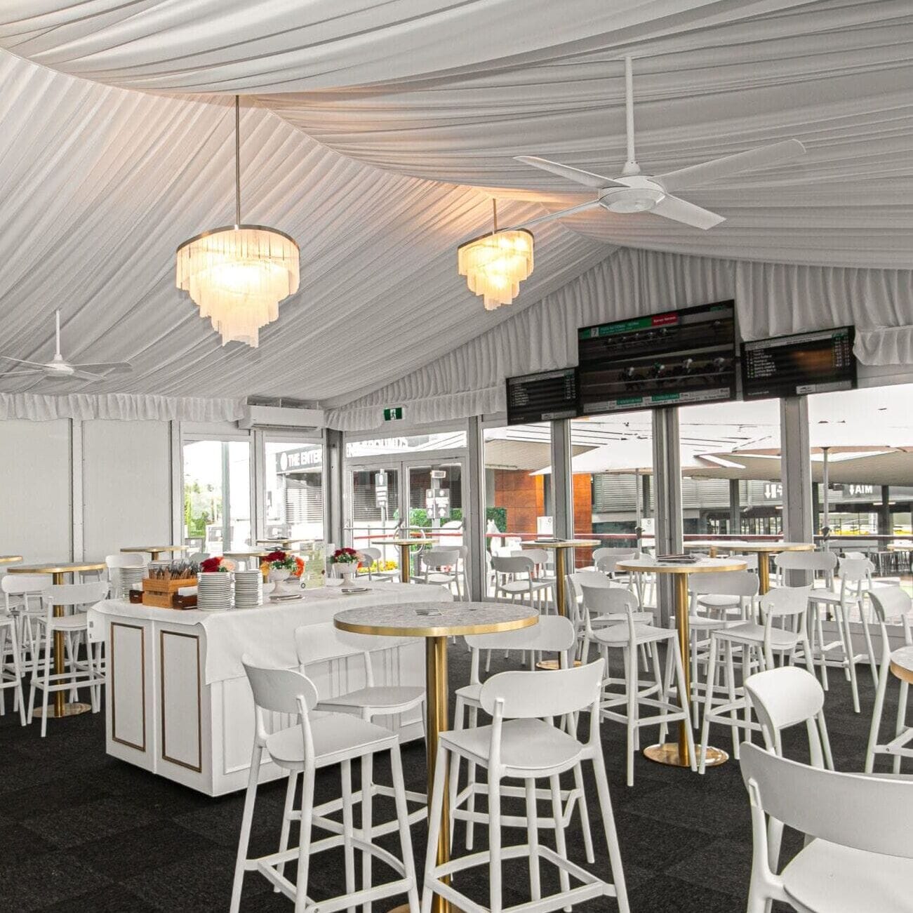 A stylish, climate-controlled space that seats 40 banquet-style or 60 for a cocktail event. With draped ceilings, chandeliers, a private bar and alfresco access. The Carousel is perfect for intimate gatherings.